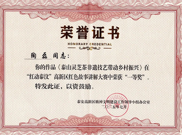 在近期开展的“红动泰汶”红色故事讲解大赛中,由山东芝人堂药业有限公司选送、由公司总经理陶磊作为志愿讲解员播讲的《泰山灵芝茶非遗技艺带动乡村振兴》红色故事,荣获“一等奖”。...